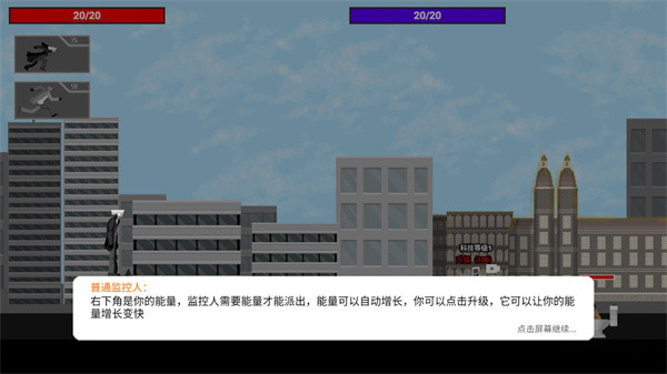 3、右下角是你的能量,监控人需要能量才能派出,能量可以自动增长,你可以点击升级,它可以让你的能量增长变快。