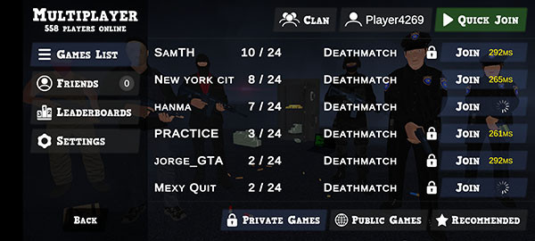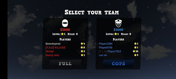 警察和强盗模拟器真实模拟枪战射击逃脱玩法,游戏中分别有警察和强盗两帮派,玩家需要根据不同的阵营获得各种武器装备进行战斗,支持多种趣味联机玩法,可以和小伙伴一起抓捕强盗,提供大量的武器装备可以车辆可以使用,精彩的射击枪战玩法,快来下载一起战斗吧。