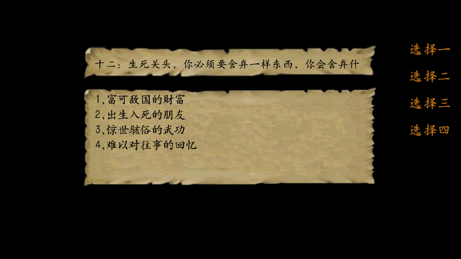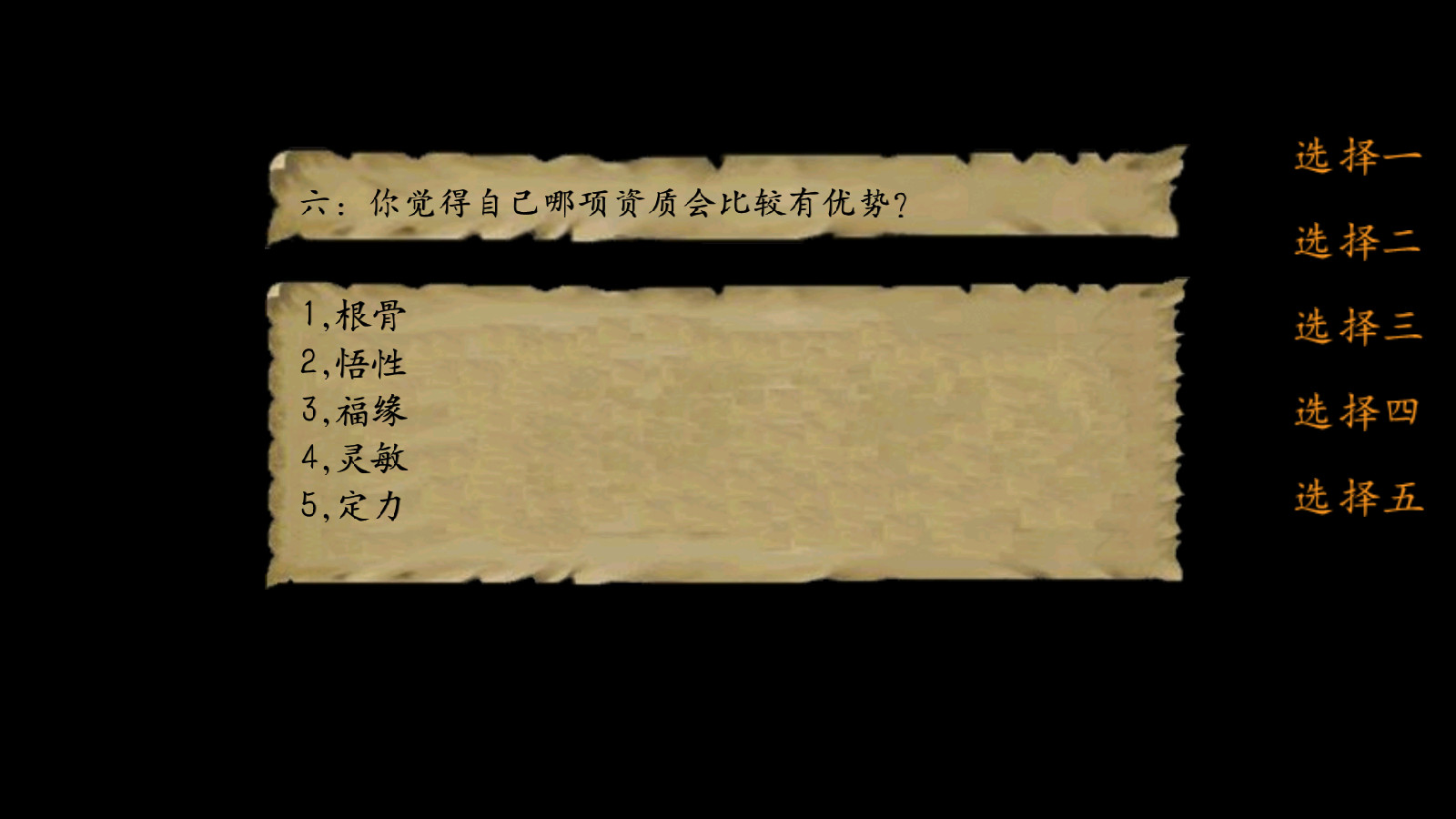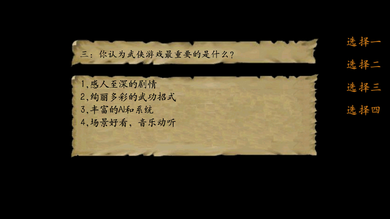 三、你认为武侠游戏最重要的是什么?(此题随便回答,不增减属性)