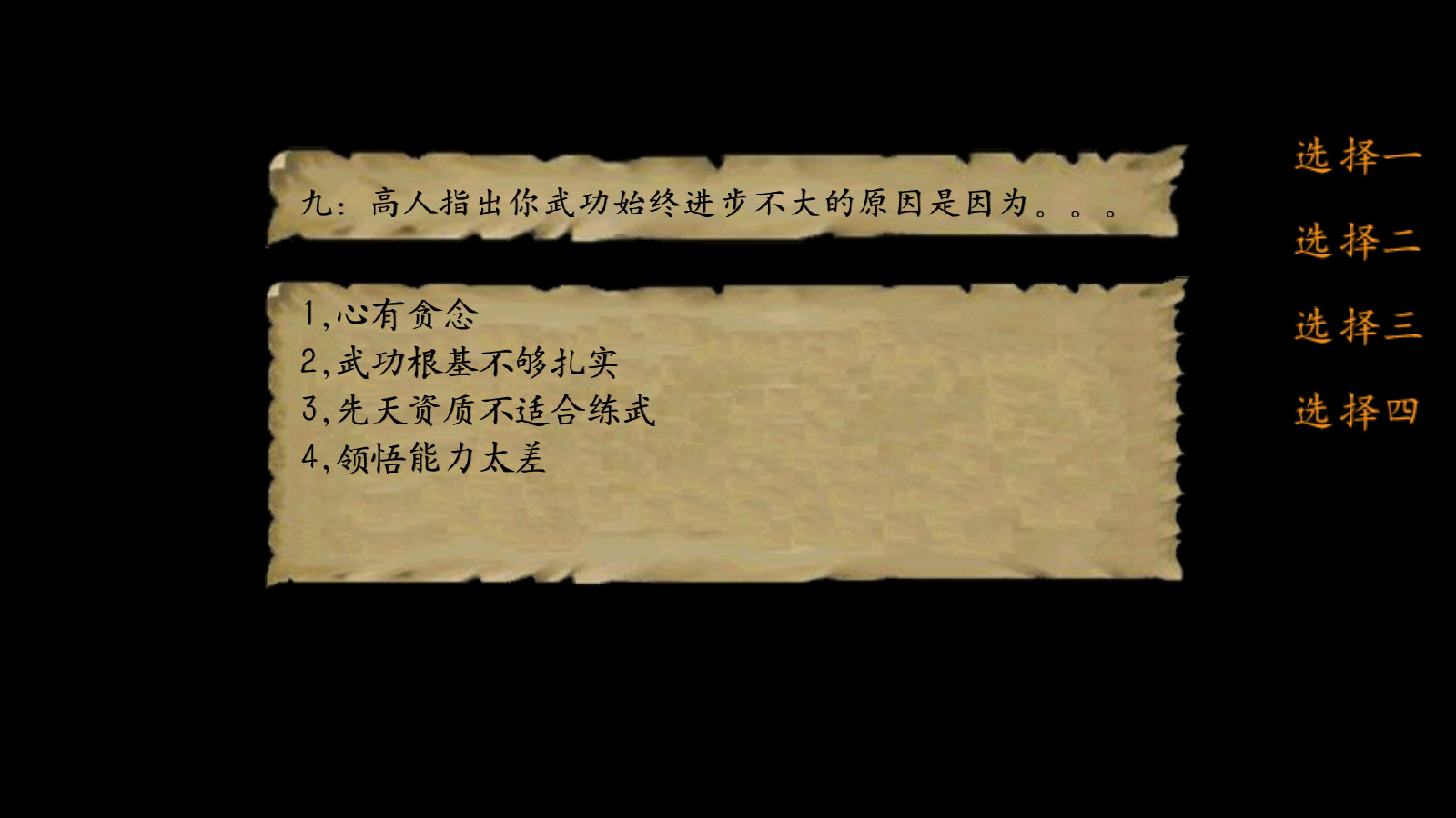 九、高人指出你武功始终进步不大的原因是因为?