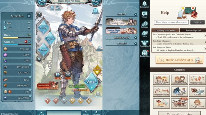 《碧蓝幻想》是于 2014 年正式营运的王道 RPG 手机游戏。目前已推出 App Store 版、Google Play 版、AndApp 版及网页版。玩家将扮演游戏的主角,以骑空士之姿,乘着骑空艇在漂浮于空中的各岛屿间展开旅程。