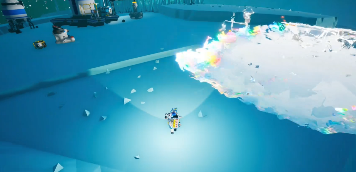 1.格拉西欧的环境是北极平台搭建的前提,其核心直接决定了平台功能定位与生存策略,其中的昼夜交替快、温差大,且频繁爆发风暴,画面会出现雪花干扰特效,飞溅的碎石会威胁角色与载具安全;同时氧气稀薄,必须依赖制氧设备维持生存,低温环境还需配备防寒装备,整体生存难度较高。