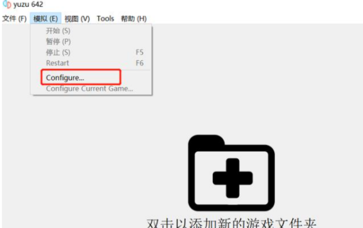 双击打开Yuzu模拟器,点击上方菜单栏的“模拟”,然后选择下方的“Configure”配置选项。