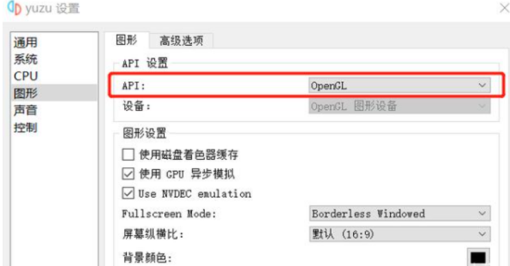 切换到左侧的“图形”选项卡,找到右侧的“API”设置: