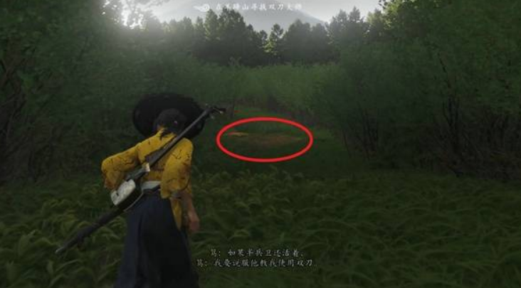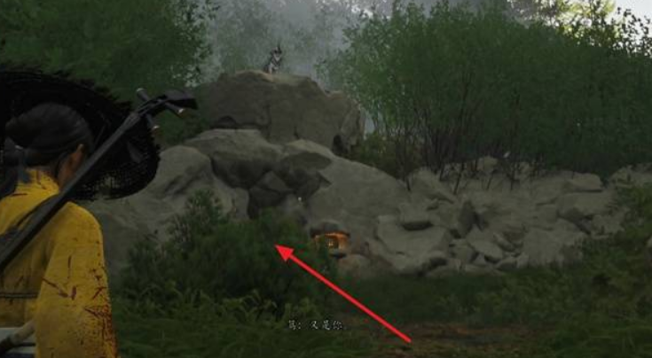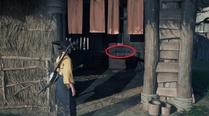 看到一个小屋后,绕到另一面进入小屋,和门口的刀鞘互动触发剧情。