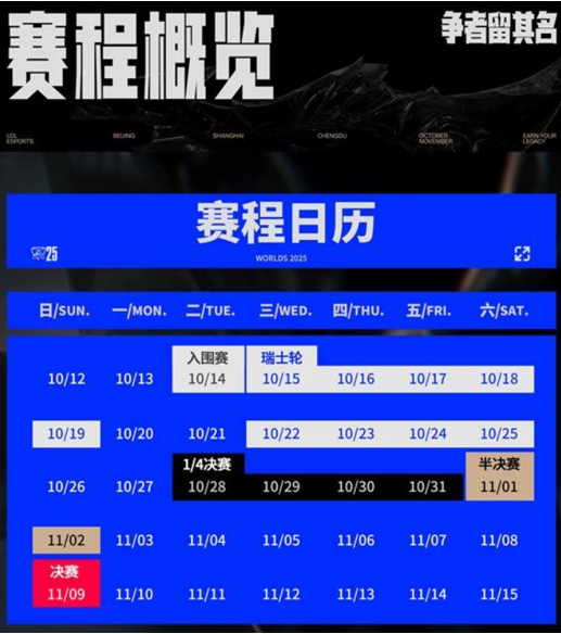 2025英雄联盟全球总决赛将于北京时间10月14日正式开赛,