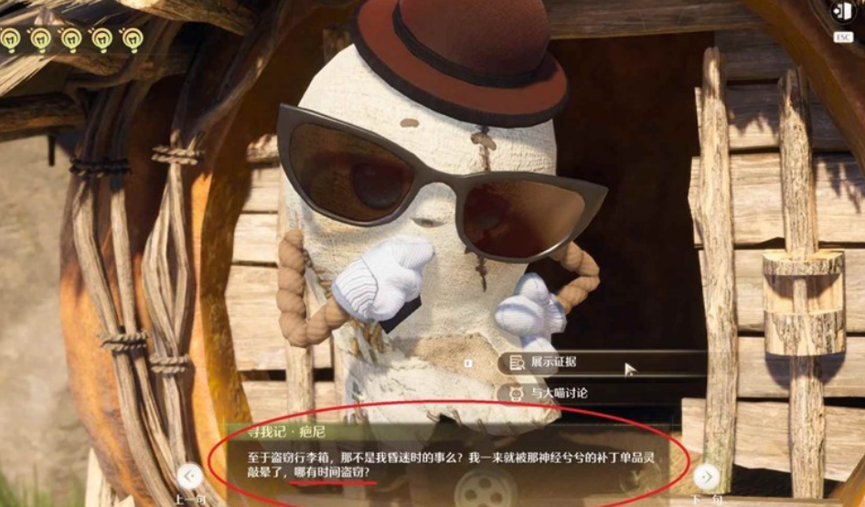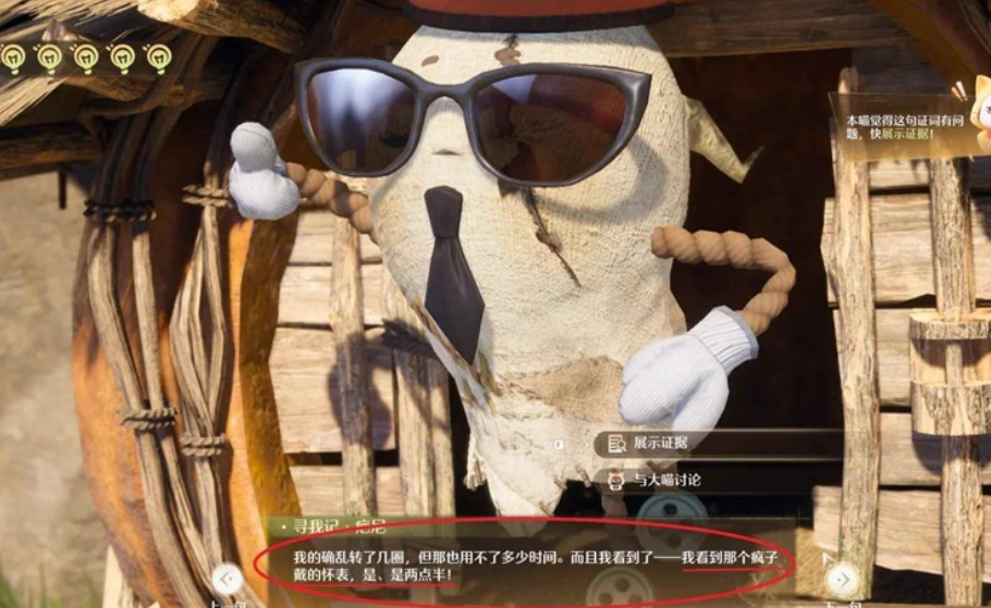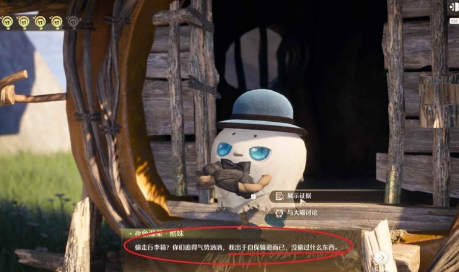 我们点击右边的下一句,看到有“哪有时间盗窃”的句子,就选择展示证据;