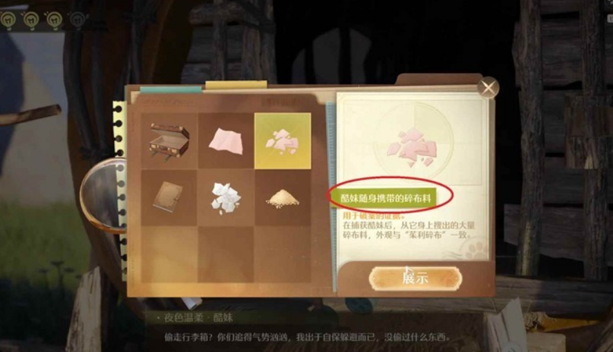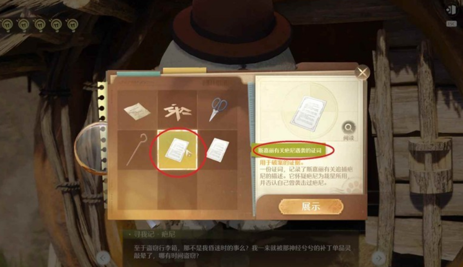 之后和酷妹的对话,选择 发现疤尼时的细节,获得酷妹有关发现昏迷疤尼的证词;