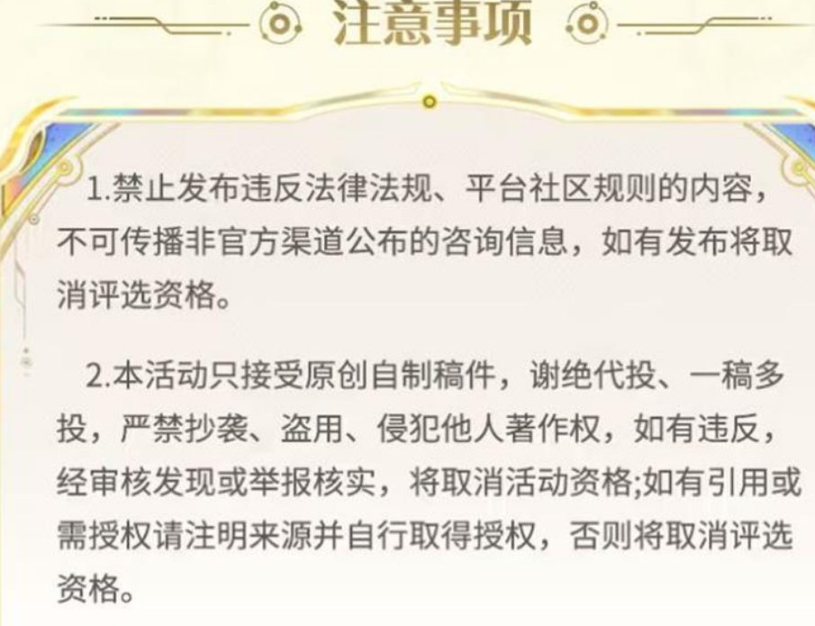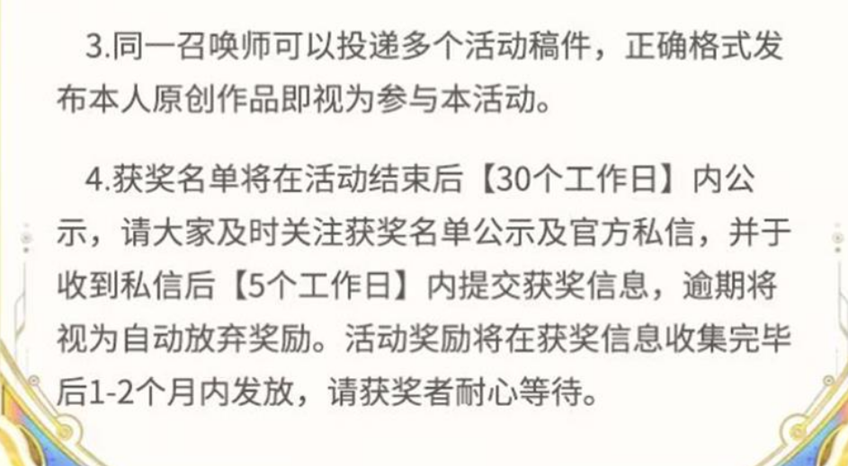 3.同一召唤师可以投递多个活动稿件,正确格式发布本人原创作品即视为参与本活动。