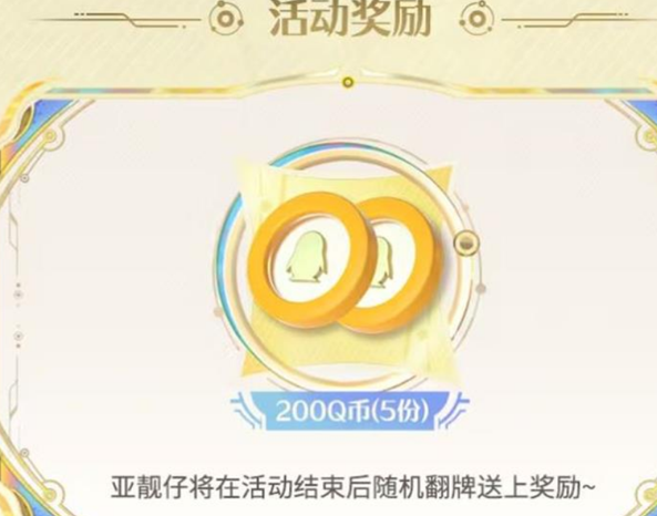 为了感谢玩家们的参与,官方将随机翻牌送上奖励,包括200Q币(5份)等丰厚奖品。亚靓仔将在活动结束后随机翻牌送上奖励,让玩家们的分享更加有意义。