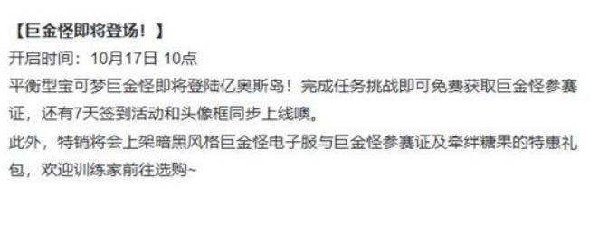10月17日10点,平衡型宝可梦巨金怪正式登场!作为亿奥斯岛上的一股新势力,巨金怪以其独特的技能和战斗风格,将成为玩家们的新选择。完成任务挑战,即可免费获取巨金怪参赛证,让你轻松拥有这只强大的宝可梦。