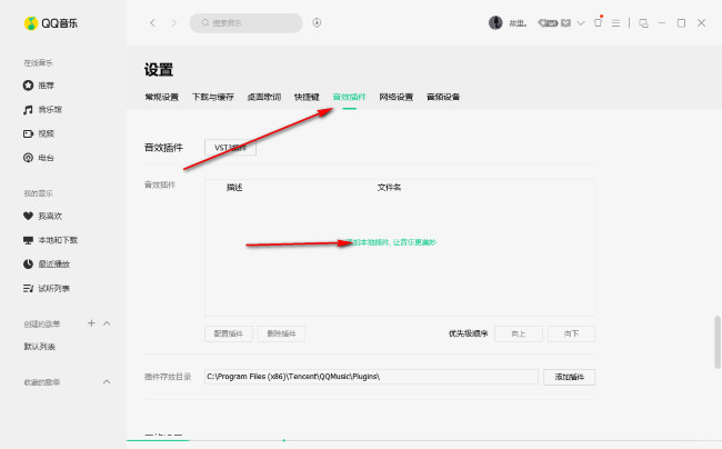 在打开的窗口界面中,点击上方中的"音效插件"选项,然后点击其中的"添加本地插件"。