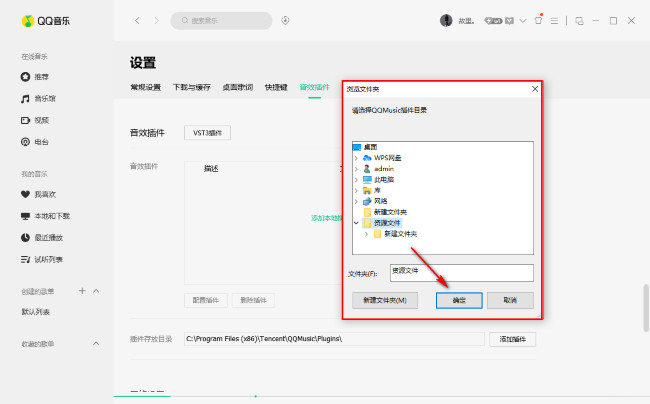 最后在弹出的窗口中选择保存的音效插件,随后点击"确定"。