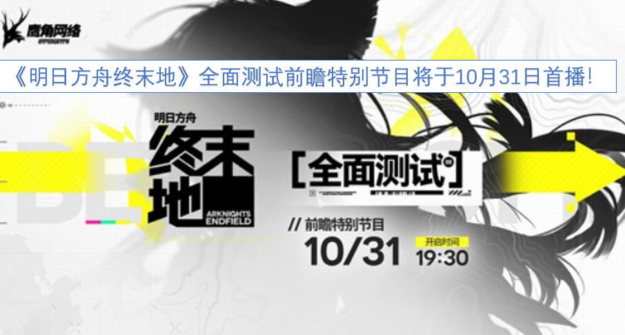 《明日方舟:终末地》官方今日宣布,游戏的全面测试前瞻特别节目将于10月31日19:30播出。这次特别节目官方将公布最新测试详细信息。以下是小编为大家准备的详细咨询,有兴趣的玩家们可以前来查阅!