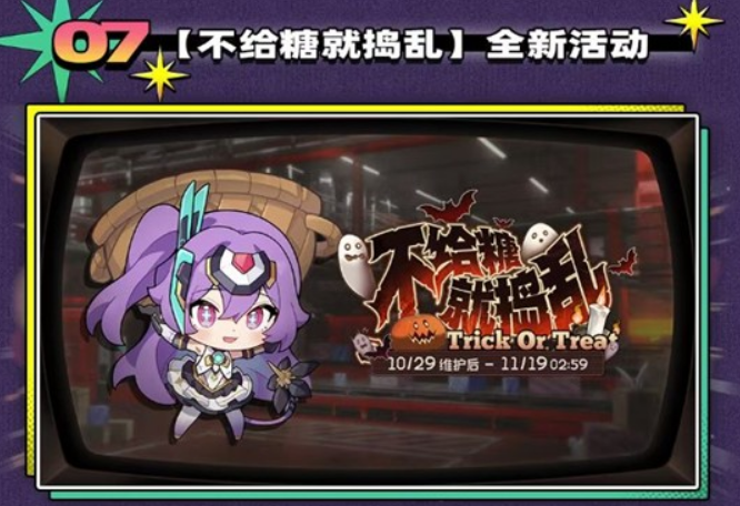 全新小游戏【不给糖就捣乱】也将于10月29日维护后至11月19日2:59期间上线,玩家在规定时间内接住掉落的糖果,即可获得分数并完成任务,领取对应奖励。
