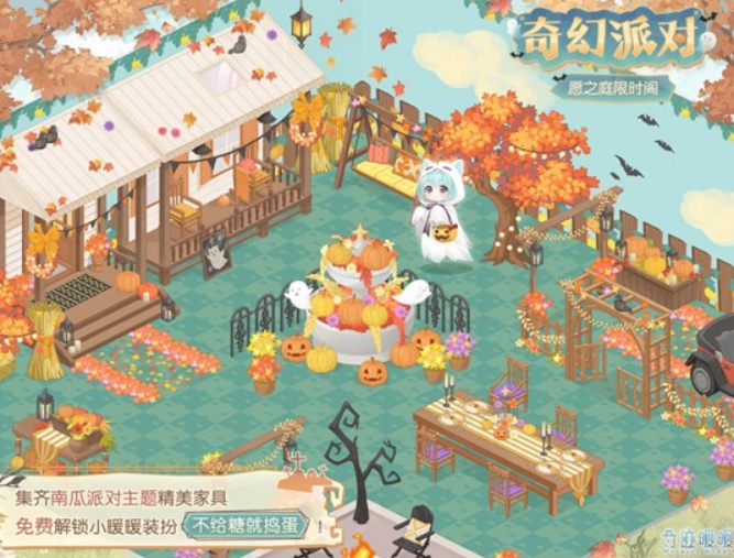 在小屋限时抽奖阁“奇幻派对”许愿,可获得南瓜派对主题精美家具!集齐所有限时家具还可解锁小暖暖装扮“不给糖就捣蛋”!
