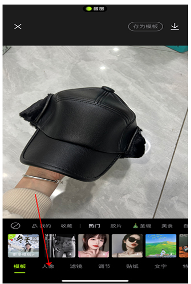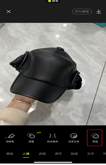 进入到人像选择列表,向右滑动菜单栏找到并点击“抠图”选项;