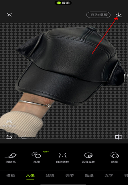 最后就可以看到抠完的样子了,点击页面右上角的“下载”按钮来保存。