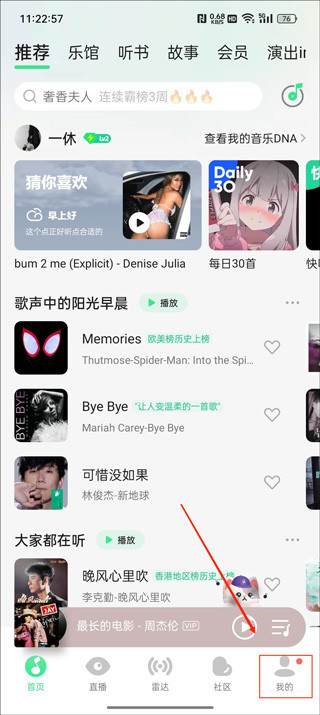首先咱们在QQ音乐的首页点击右下角的【我的】
