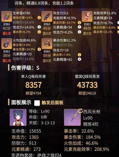 (但元素充能不要低于200%,不然技能不循环容易断招)