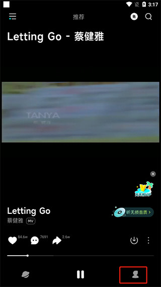 播放音乐后点击底部“我的”,进入个人主页。