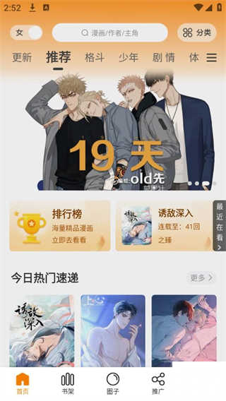 2、首页就会根据你的喜好推荐漫画类型,大家也可以在分类页面查看更多的漫画分类。