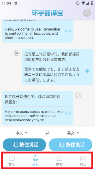 3、同时,除了文字翻译以外,语音、拍照、照片翻译都支持,适合各种场合。