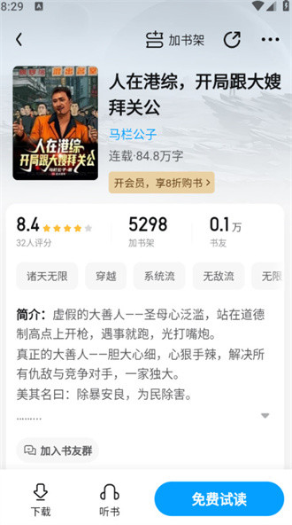 3、点击喜欢的小说进入中,可以进行阅读,还能加入到书架中。