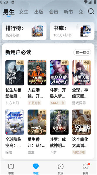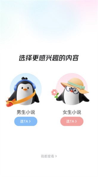 1、进入软件中根据自己的喜好选择感兴趣的内容,男生小说或者女生小说。