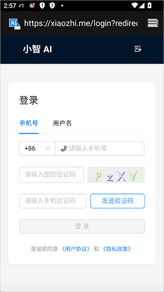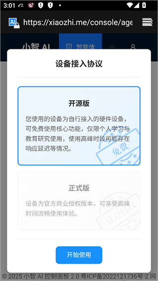 4、然后点击app中的官网链接,打开小智AI聊天机器的官网控制台