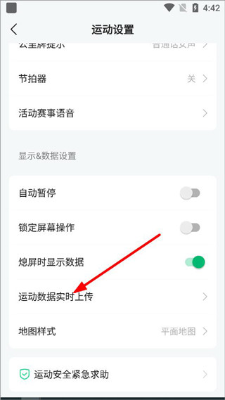 4、也可打开设置中的运动设置,开启运动数据实时上传即可记录跑步数据。
