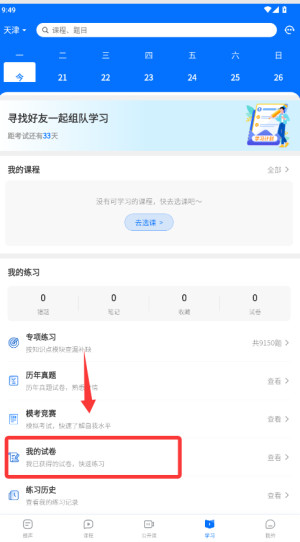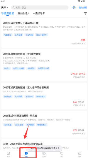 软件提供了线上直播加录播的课程资源,用户可以对里面的考试课程进行实时的查看学习。