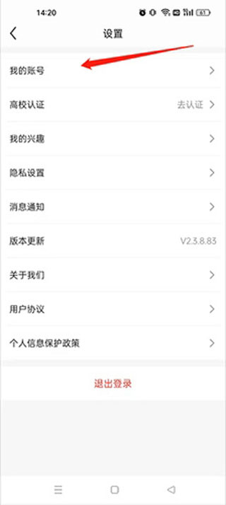3、点击“我的账号”选项。如图所示。