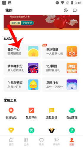 进入“我的”页面登录注册,解锁商城全部功能与权益。
