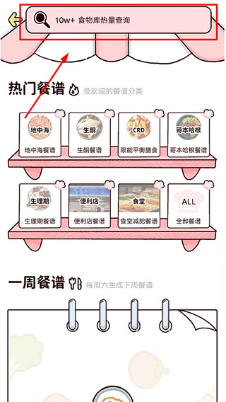 2、食谱推荐:自动生成营养均衡餐单,可自由替换食材,控制总热量摄入。
