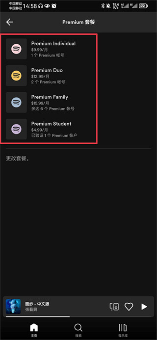 6、非会员提供14天跨区听歌.比如你是印度账户,在14天内是可以在国外任意地方听歌.14天后需要在原注册地/国家的IP重新登录一次才能继续使用.而Spotify会员没有任何限制,可以无限制听歌.