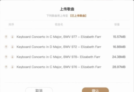 识别歌曲后,确认上传,将根据文件夹自动生成对应专辑。