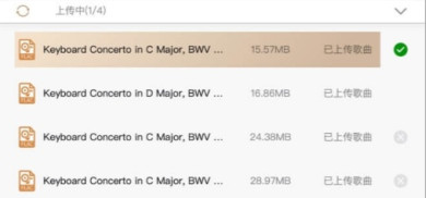 二、识别歌曲后,确认上传,默认上传至《已上传歌曲》,若需上传至其他专辑,请先打开对应专辑后再点击上传。