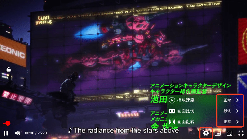 全屏之后,如果想要调整播放速度等,点击下方的设置。