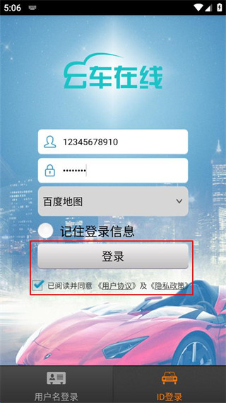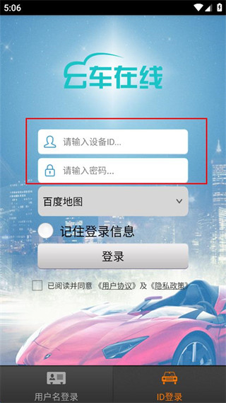 4、填写设备ID与密码,勾选已阅读并同意相关协议,点击登录按钮完成登录操作。