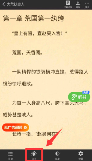 3、如果在夜间看小说可以调节红色框框那个功能就不会太伤眼。