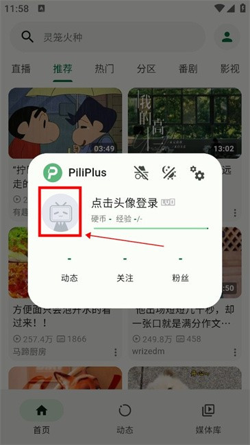主界面仅保留“动态”“推荐”“热门”等核心板块,无“会员购”“课堂”等冗余功能,刷视频沉浸感强