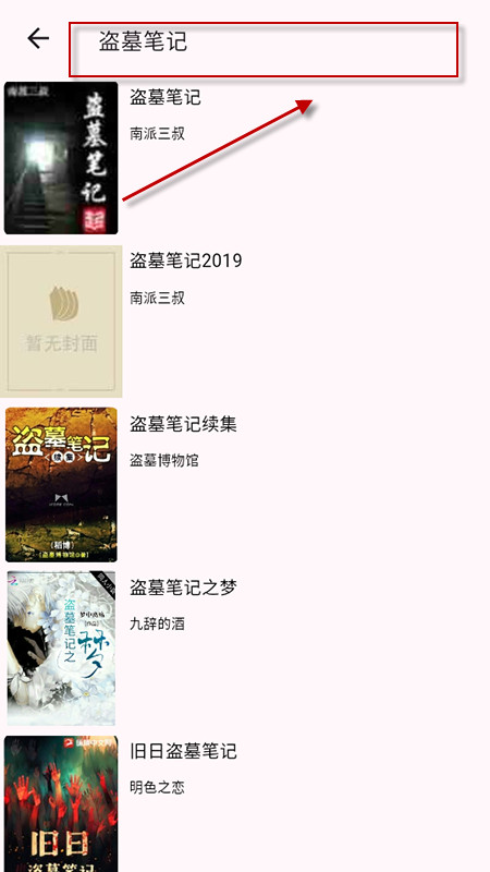 2、也通过顶部搜索栏输入关键词查找特定小说;