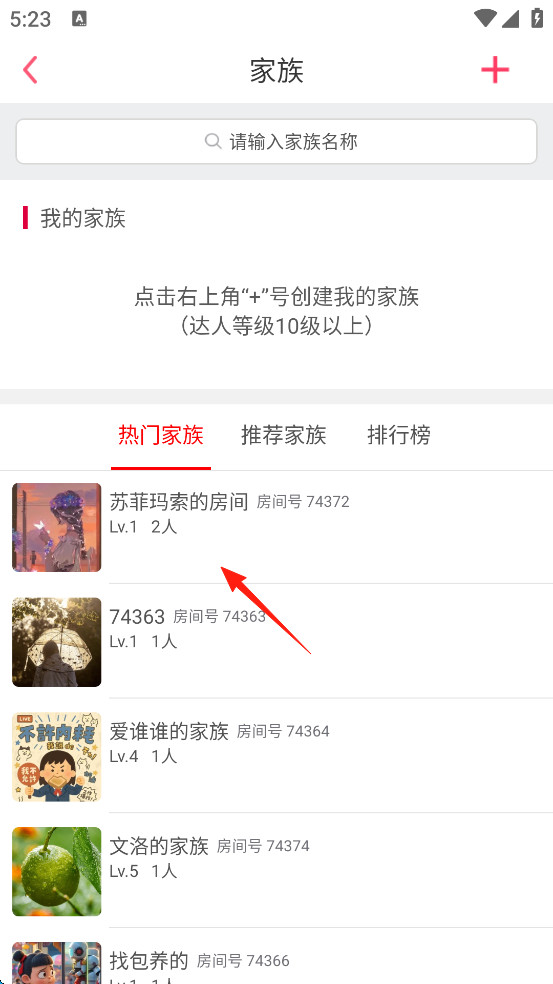 点击想加入的家族,提交加入请求。