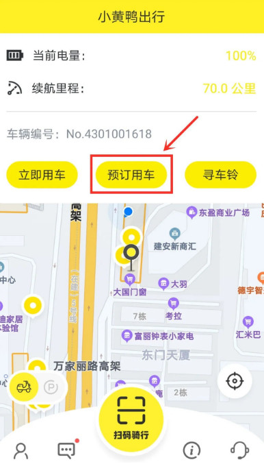 1、预定用车打开小黄鸭出行APP点击查看附近车辆然后点击要用的车辆点击【预订用车】就可以啦