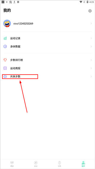 1、首先打开手机中的vivo健康,在主页面中需要点击右下角的“我的”。