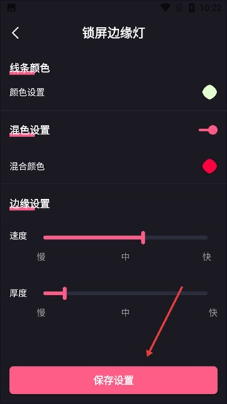 3、可配置线条颜色、混合效果,还能调整边缘的速度、厚度等参数,自定义锁屏样式。