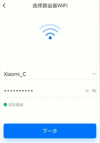 2、之后输入家庭路由器的wifi和密码,并点击下一步