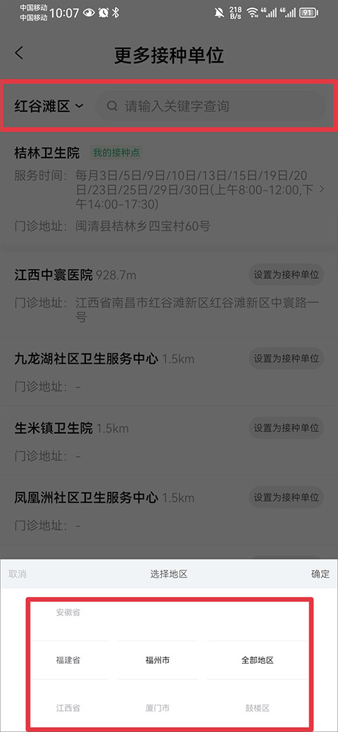 2、然后选择或搜索你要更换的接种单位