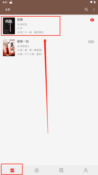 5、回到书架即可看到刚刚保存的狂飙。